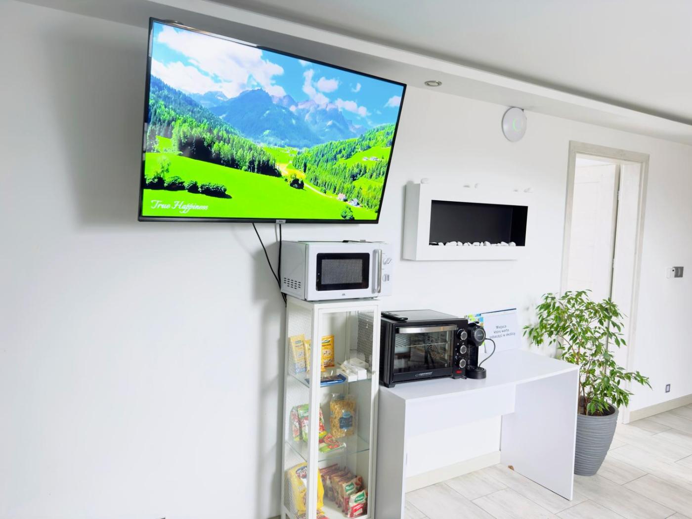 Mały pokój Dwuosobowy. Offering free toiletries, this double room includes a shared bathroom with a shower and a hairdryer. The double room offers a flat-screen TV with streaming services, a seating area, a dining area, an electric kettle as well as garden views. The unit offers 3 beds. Pokój Dwuosobowy - 3 osobowy. Powierzchnia pokoju ok.: 13 mkw.