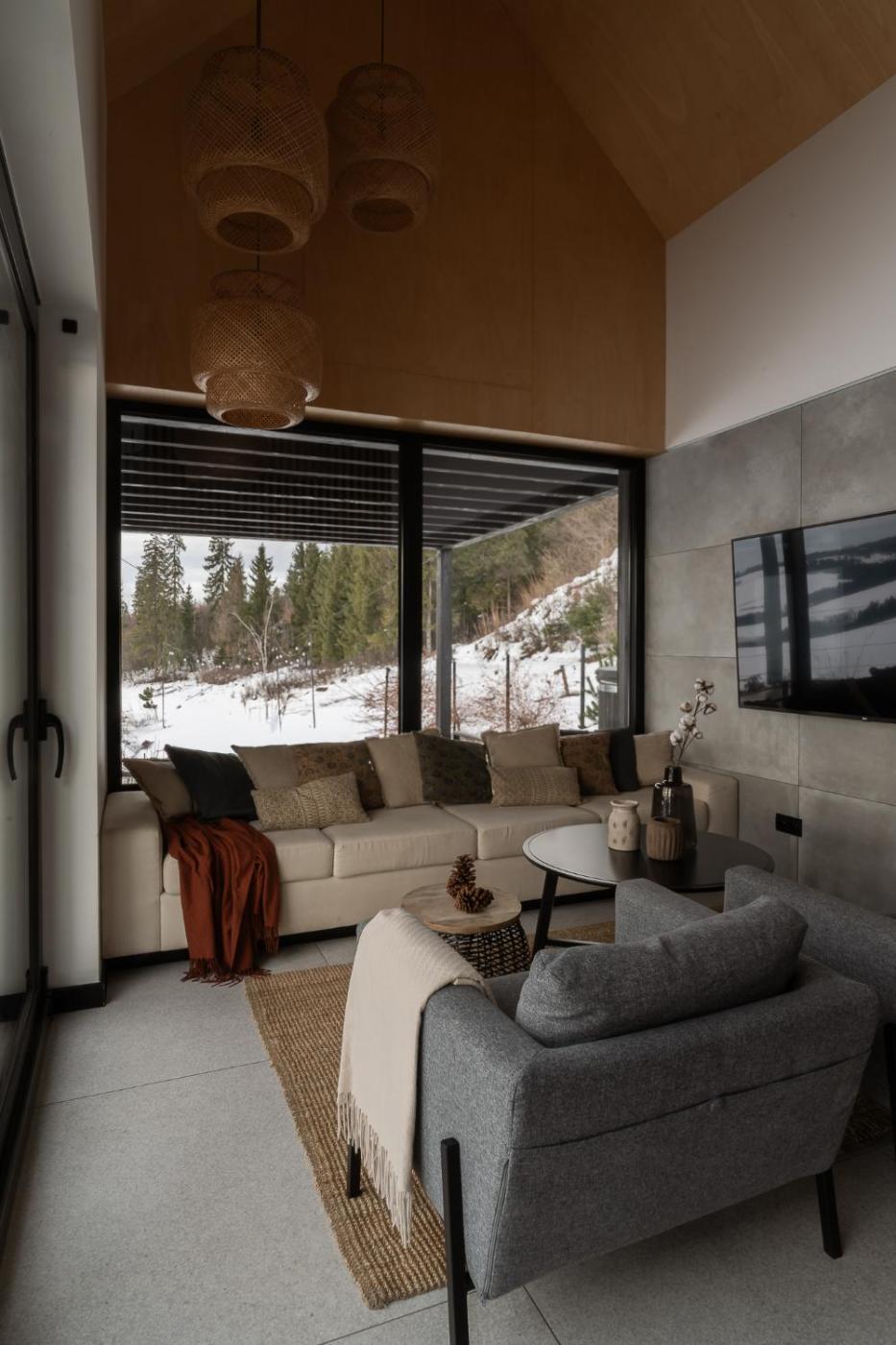 W domku zapewniono taras, kilka sypialni (2), salon z telewizorem z płaskim ekranem, aneks kuchenny ze standardowym wyposażeniem, takim jak lodówka i zmywarka, a także łazienkę (1) z prysznicem. Goście mogą podziwiać widok na góry. W domku zapewniono ręczniki i pościel.